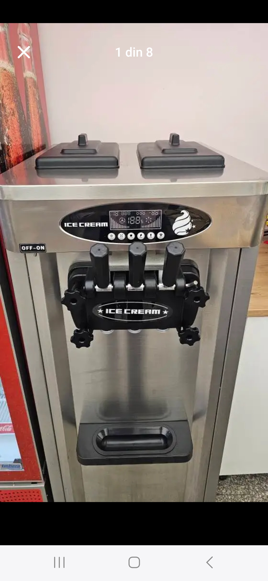 Vând mașină de înghețată soft, îmbunătățită cu 2 compresoare, cu 2 cuve a câte 5l fiecare, folosită de 4 ori.(Mașina a fost plasată într-o locație fără vad)