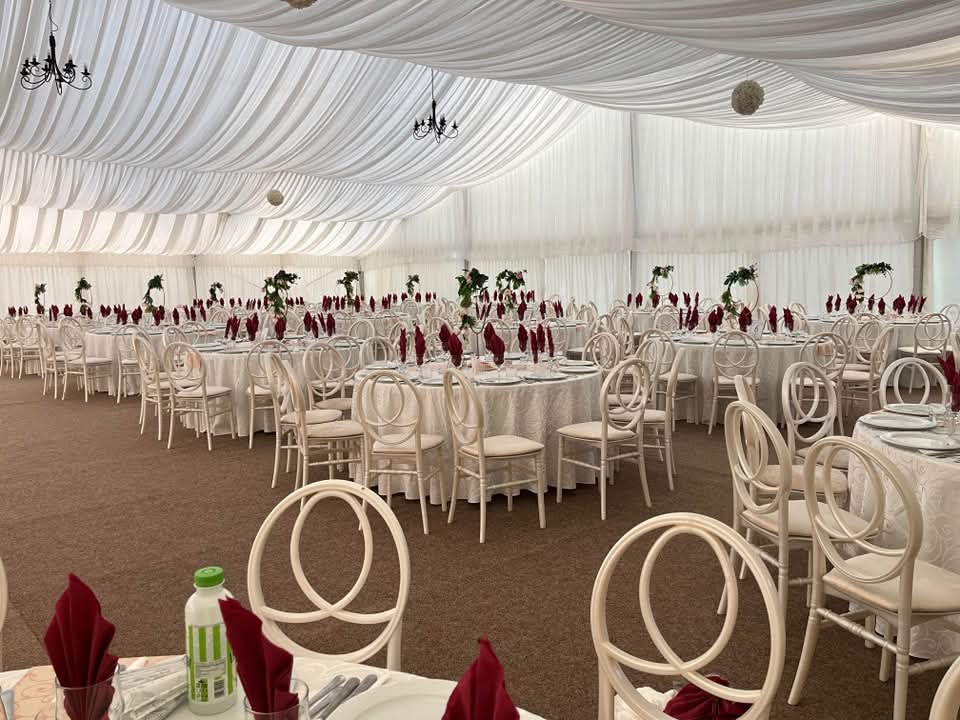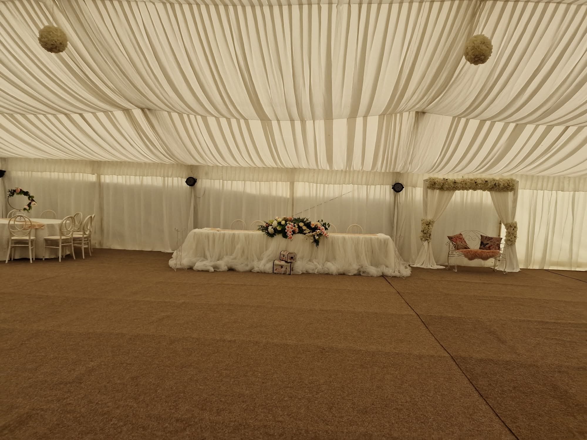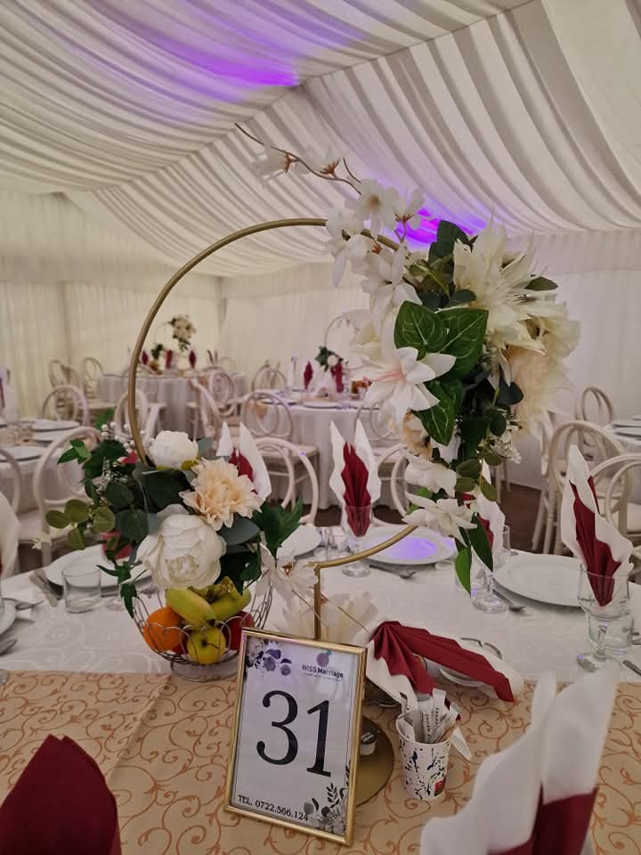 Vesela Apullum Alba Iulia, Drapaj complet,6 lustre fier forjat, fețe de masa, aranjamente florale cu suport, alte decoruri(foto corner,decor masa prezidiu,stalpisori alee intrare,numeremese,)