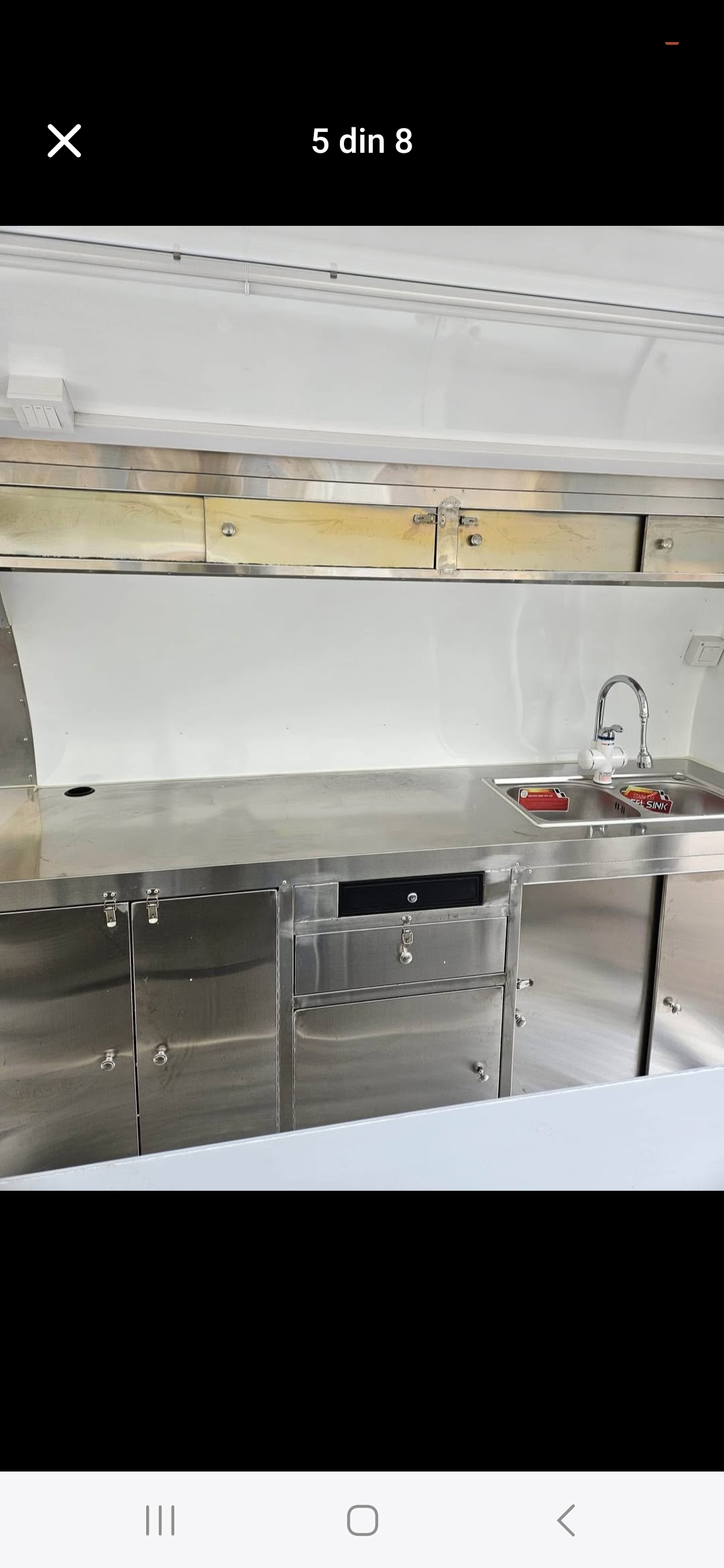 Echipata cu mobilier din inox, hota cu trei motoare, frigider, cutie pentru buteliile cu gaz, lumini led