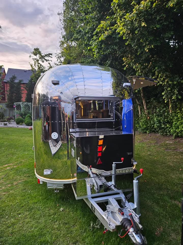 Rulota tip Airstream de 4m lungime echipata pentru bar,dar si pentru mancare, diponibila in stocul nostru.